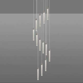 LED cascading chandelier with 18 20 cm pendants, in chrome