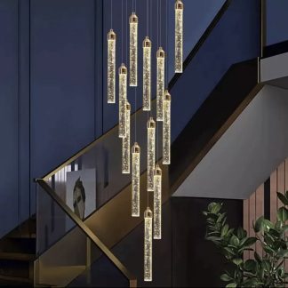 Chandelier in a flight of stairs with 48 pendants in chrome