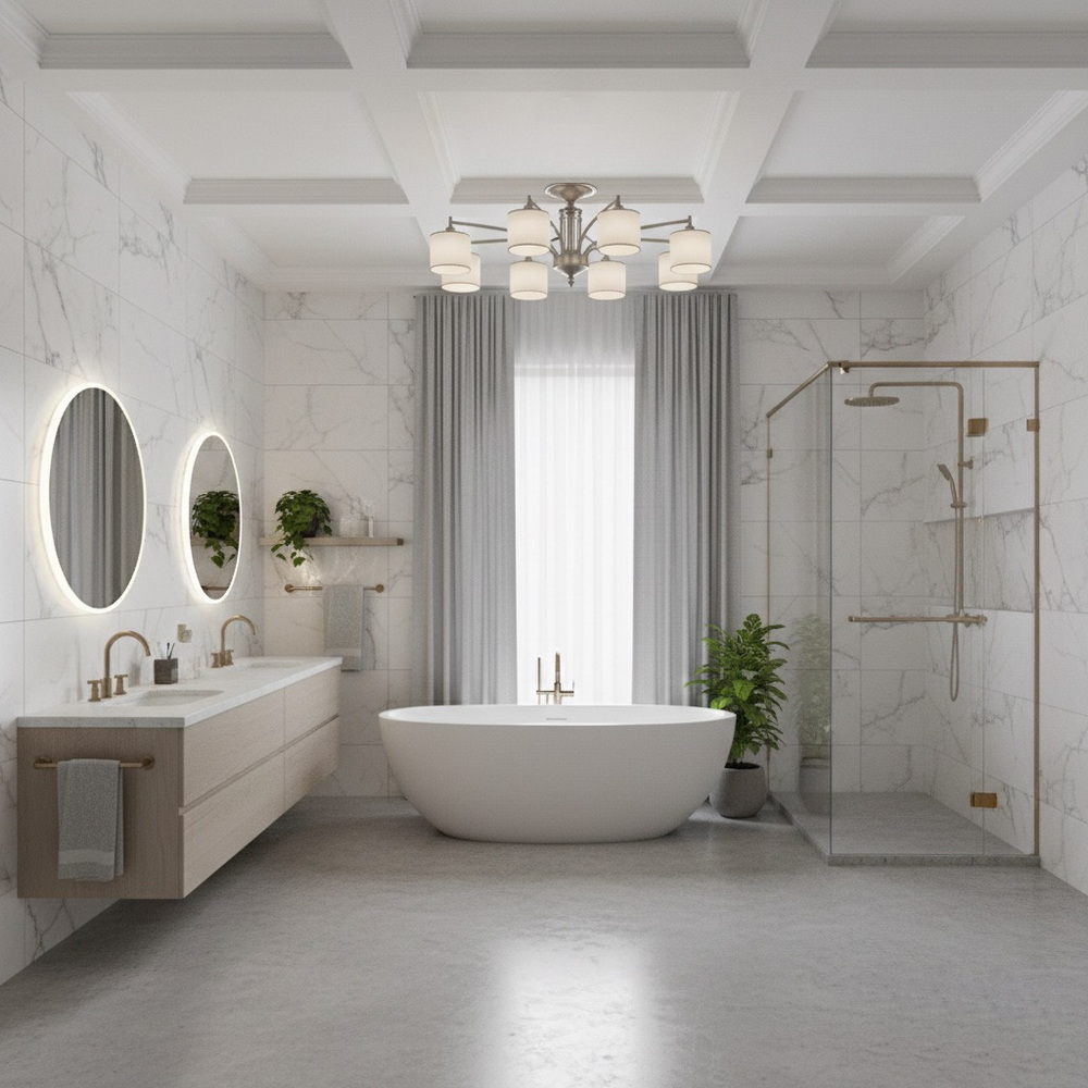 This ceiling chandelier with 9 shades is a stylish and practical solution for illuminating spacious rooms. Its refined satin frame pairs beautifully with gray shades, creating a modern and cozy accent in your interior. Perfect for living rooms, bedrooms, dining areas, or offices.