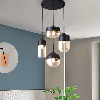 The chandelier largely determines the appearance of the entire room, its style and color scheme. The stylish chandelier 4305 from the manufacturer Poman has an unusual shape, so it is guaranteed to attract the attention of visitors. 4 individual glass shades in honey color, made slightly darkened with a warm yellowish tint. Covers for ceiling lamps are made in black matte color, not bright, but elegant and refined. The chandelier is created as 4 pendants grouped at different heights. If necessary, the chandelier can be used as separate suspensions. This creates a wide scope for the possible use of the device. The shape of each suspension has its own, original: a wide flat, spherical, a tall glass and a jar. This adds a unique charm to the whole composition and makes the chandelier desirable in every room.