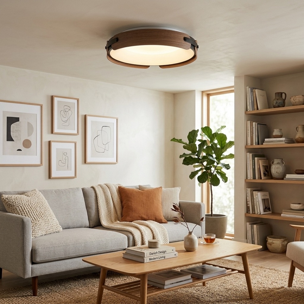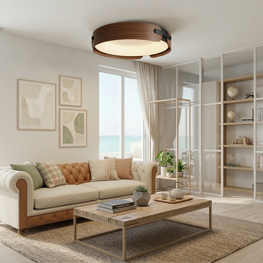 The 48 cm ceiling LED chandelier with dark wood side elements and black inserts is a stylish lighting solution that combines natural textures with modern lighting technology. ✨