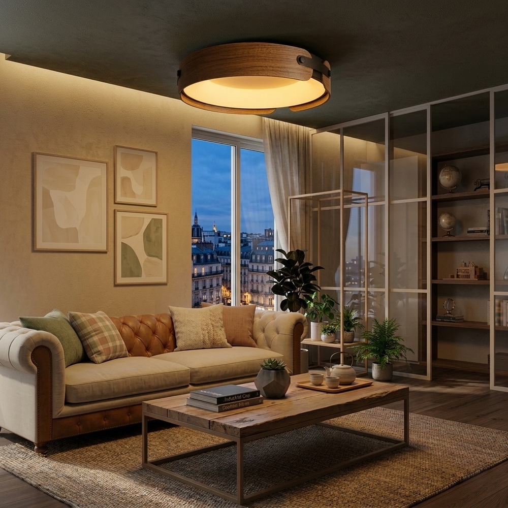 A distinctive feature of this chandelier is the side elements in dark wood finish with black inserts, which give the fixture a refined and contemporary appearance. This combination of textures makes the chandelier not only a source of light but also a decorative element that enhances the overall interior design.