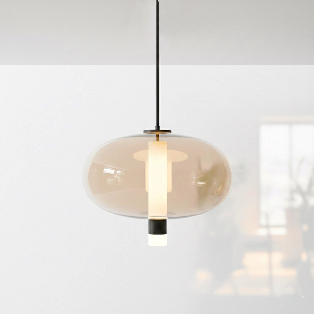This amber glass LED pendant light will become a stylish interior accent and create a warm, inviting atmosphere.
