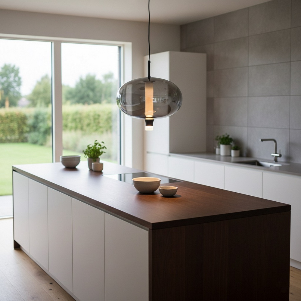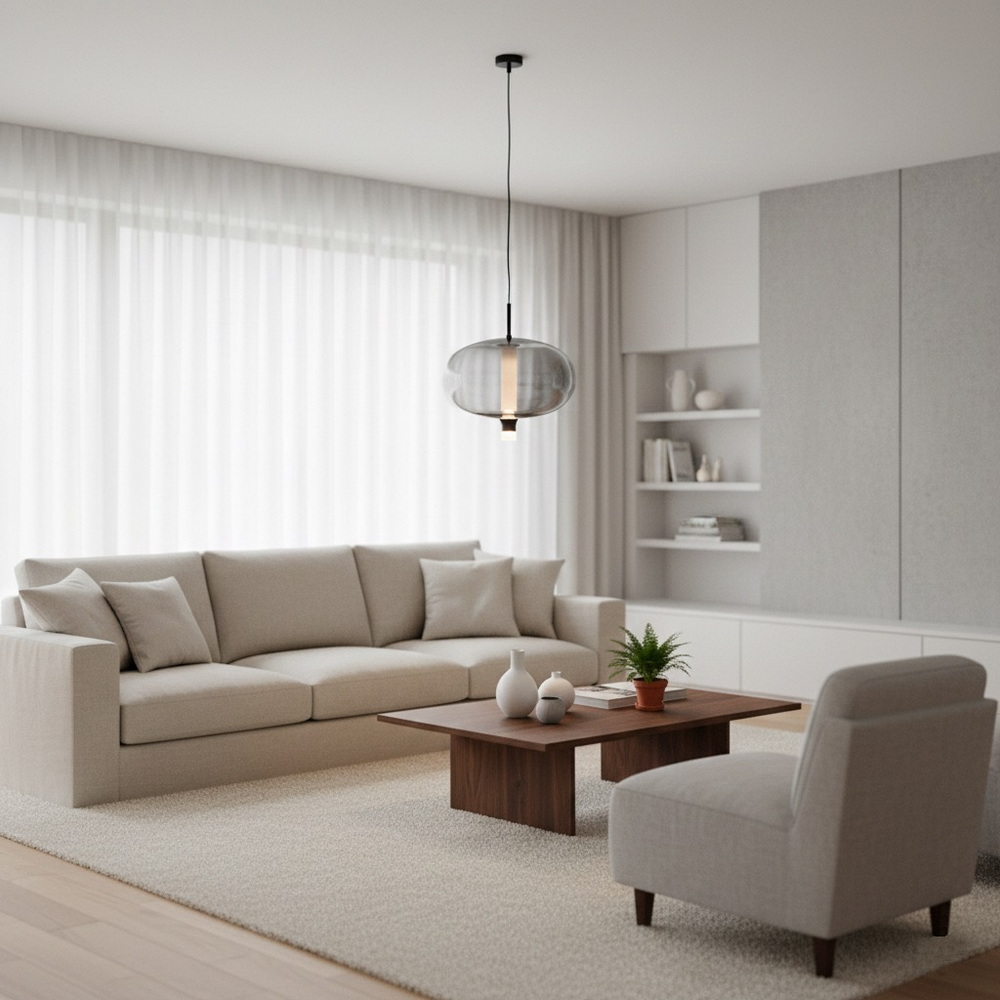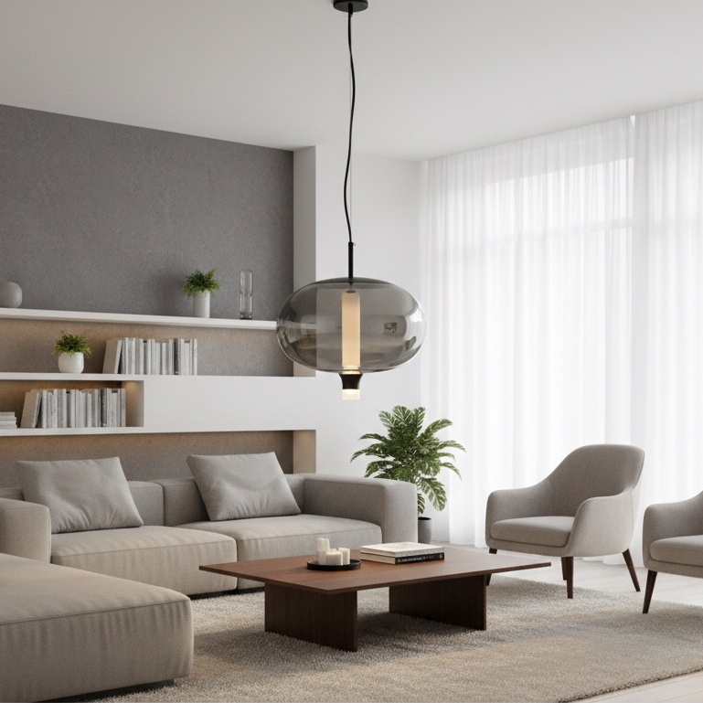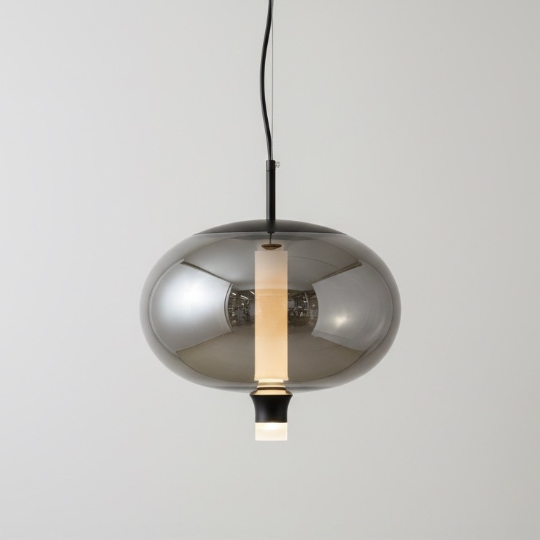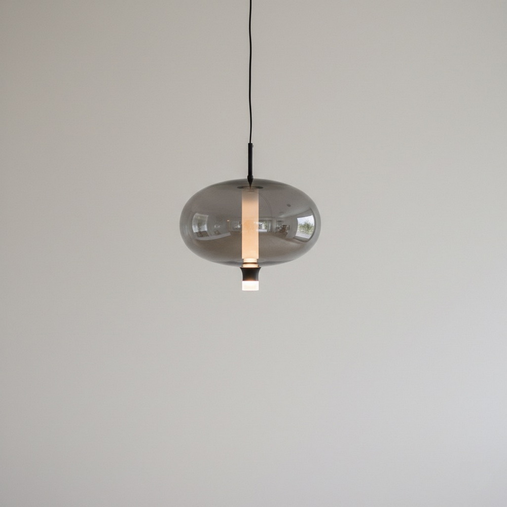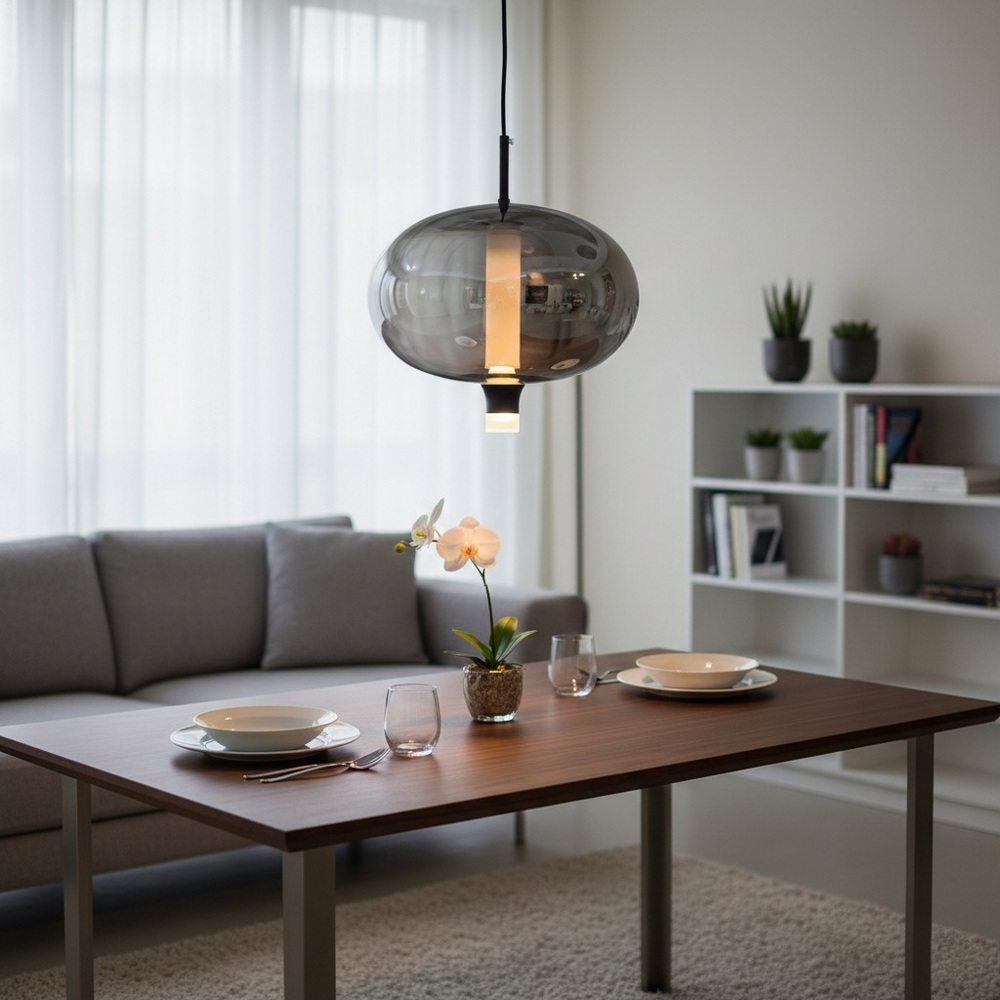The semi-transparent graphite glass softly diffuses the light, creating a warm and comfortable atmosphere without harsh shadows. The integrated LED light source ensures energy efficiency and long service life, making this pendant both practical and stylish.