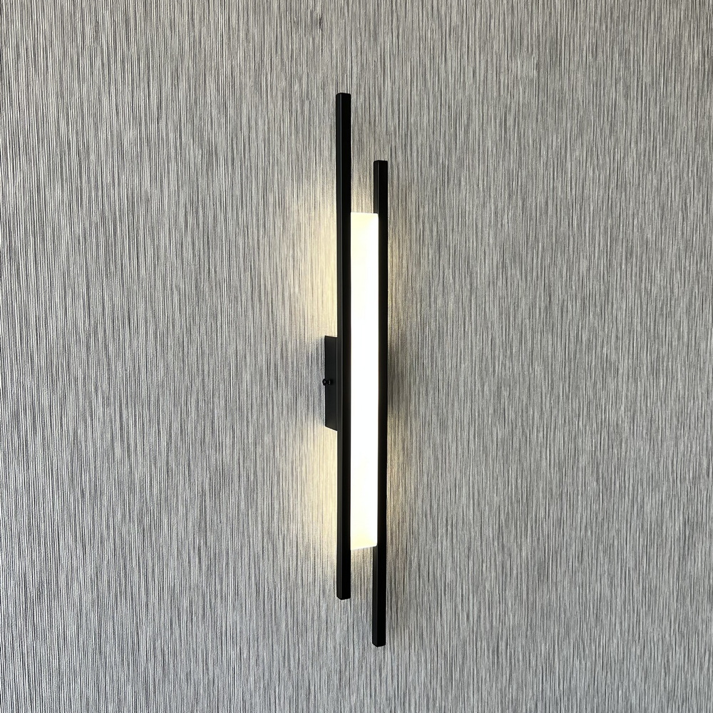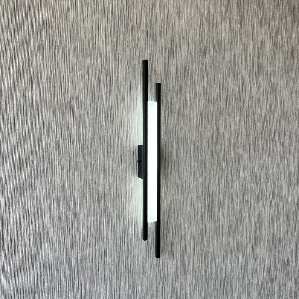Сучасне світлодіодне бра в чорному кольорі — це стильне та функціональне рішення для інтер’єрів у стилі мінімалізм, лофт, хай-тек і модерн. Лаконічна вертикальна форма з двома тонкими паралельними елементами створює виразний світловий акцент і підкреслює геометрію простору. Чорний металевий корпус ефектно контрастує з м’яким теплим світінням LED-елемента, формуючи затишну атмосферу в приміщенні.