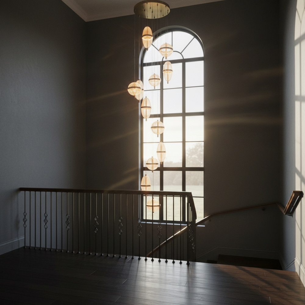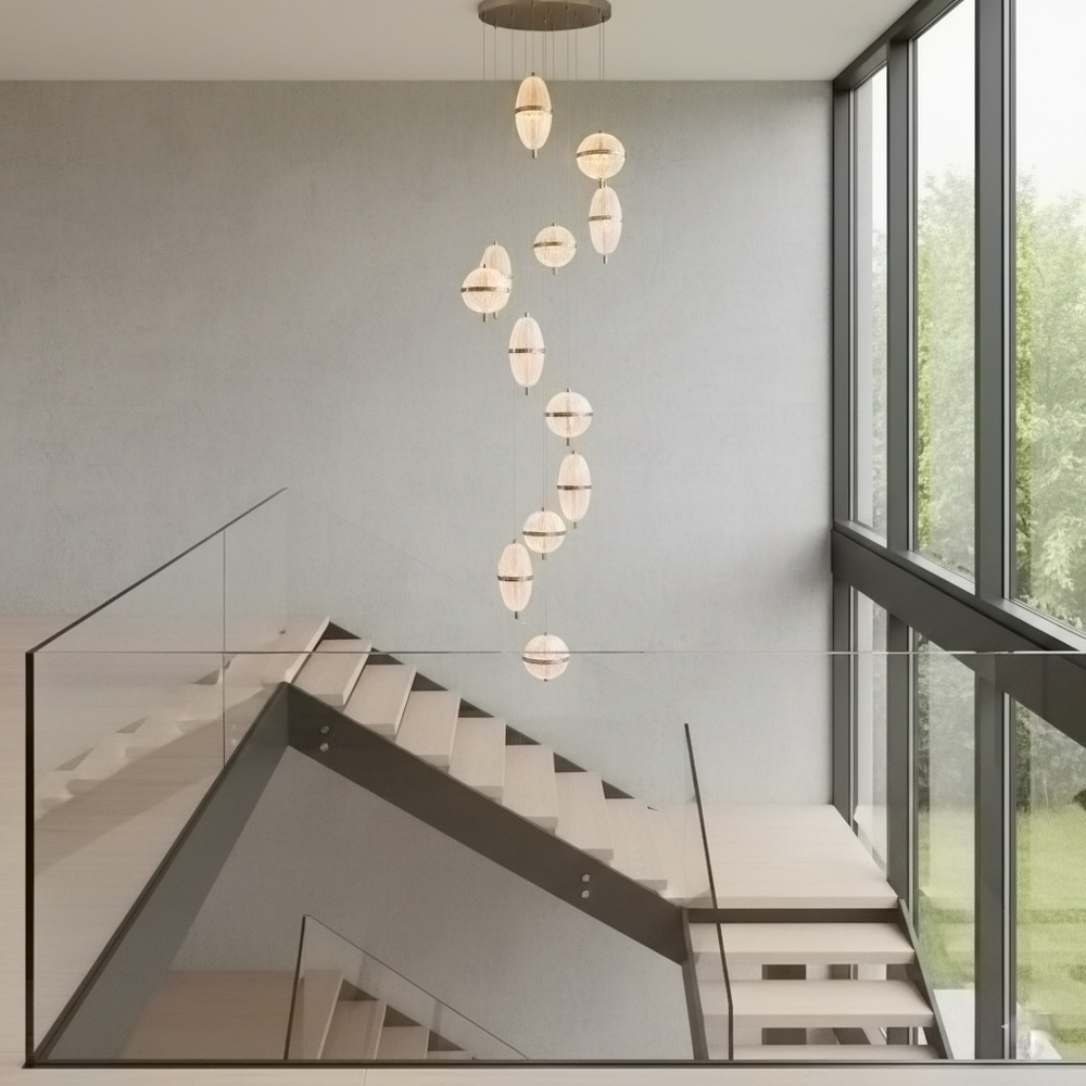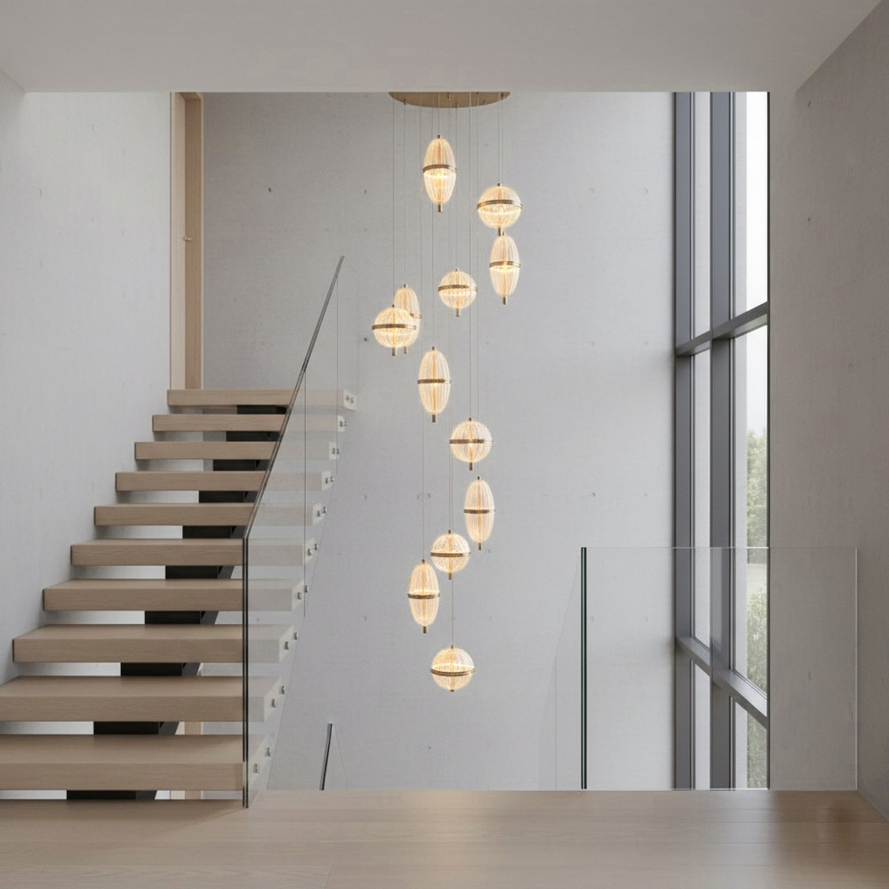 Завдяки регульованій довжині підвісів можна створювати унікальні композиції: симетричні, хвилеподібні чи асиметричні — відповідно до стилю та архітектури інтер’єру. Ця люстра не лише освітлює простір, а й стає його центральним декоративним акцентом.