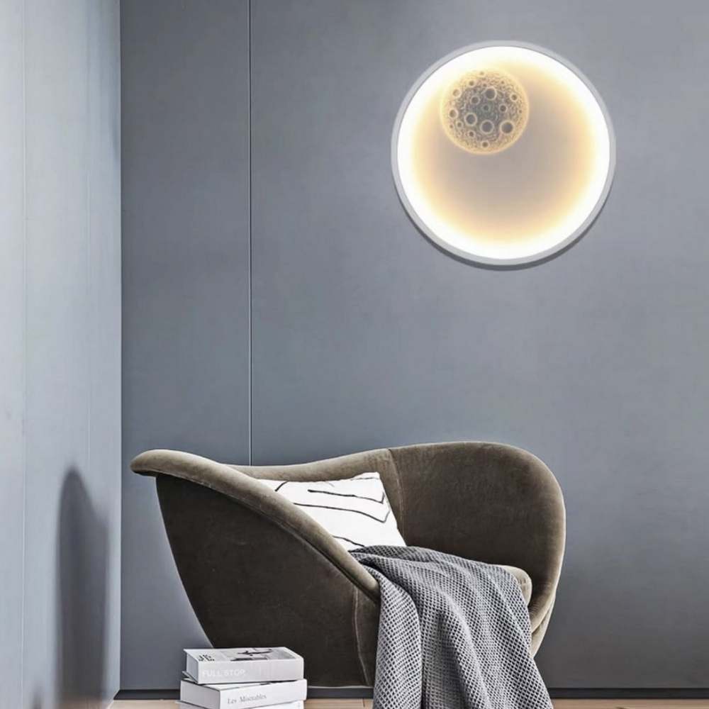 Сучасний настінно-стельовий світлодіодний світильник у білому кольорі — це стильне рішення для інтер’єрів у стилі мінімалізм, модерн, хай-тек і лофт. Ефектний круглий корпус з декоративною світловою підсвіткою створює унікальну композицію, що нагадує місячне затемнення. Такий світильник стає не просто джерелом світла, а виразним арт-об’єктом в інтер’єрі.