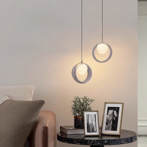 Підвісний світильник зі скла з білою матовою кулею та димчастою декоративною накладкою — це стильне рішення для сучасного інтер’єру, у якому поєднуються лаконічна форма, м’яке розсіяне світло та акцент на елегантних деталях. Діаметр плафона 190 мм робить цей підвіс універсальним для різних зон: кухні, вітальні, спальні, барної стійки або компактних комерційних приміщень.
