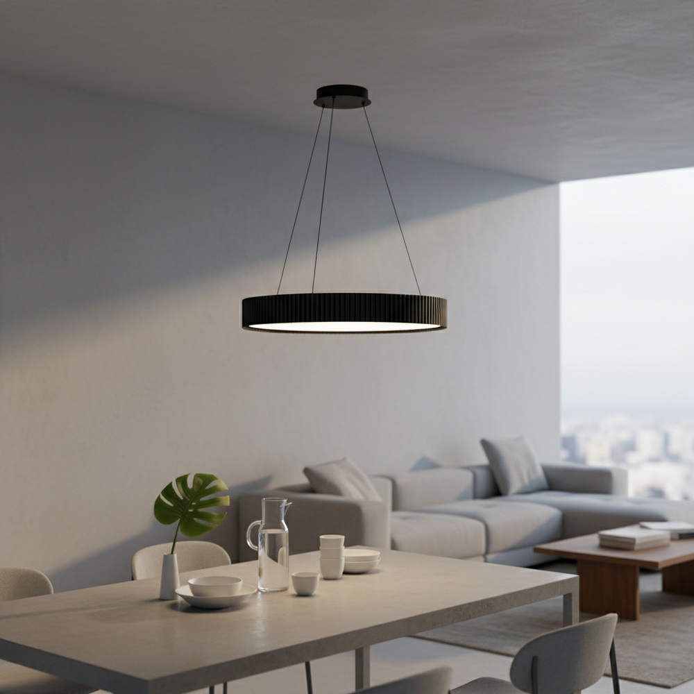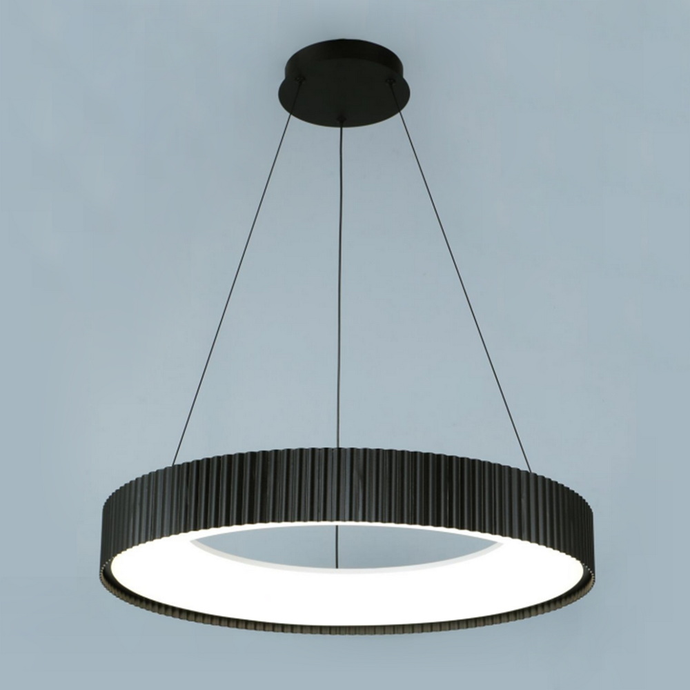 Підвісний світлодіодний світильник 50 см у чорному кольорі — це сучасне рішення для стильного освітлення інтер’єру. Витончена кільцева форма та глибокий чорний колір створюють ефектний акцент, який ідеально доповнює простір у стилі мінімалізм, лофт або хай-тек.
