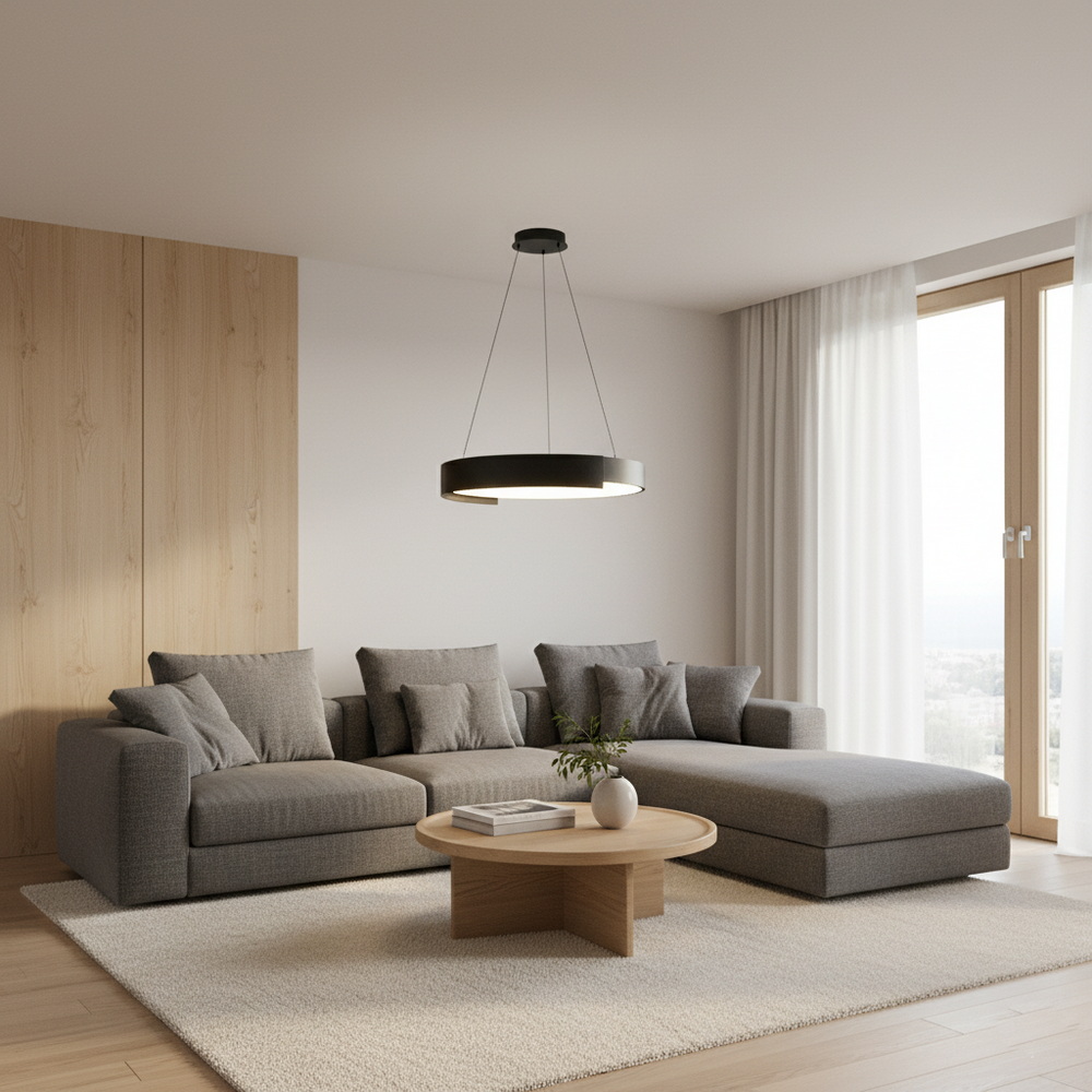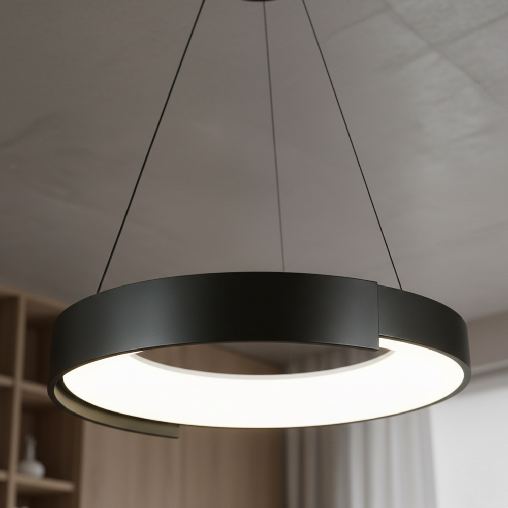 Підвісний світлодіодний світильник 50 см у чорному кольорі — це ідеальне поєднання сучасного дизайну, функціональності та енергоефективності для стильного освітлення будь-якого інтер’єру.