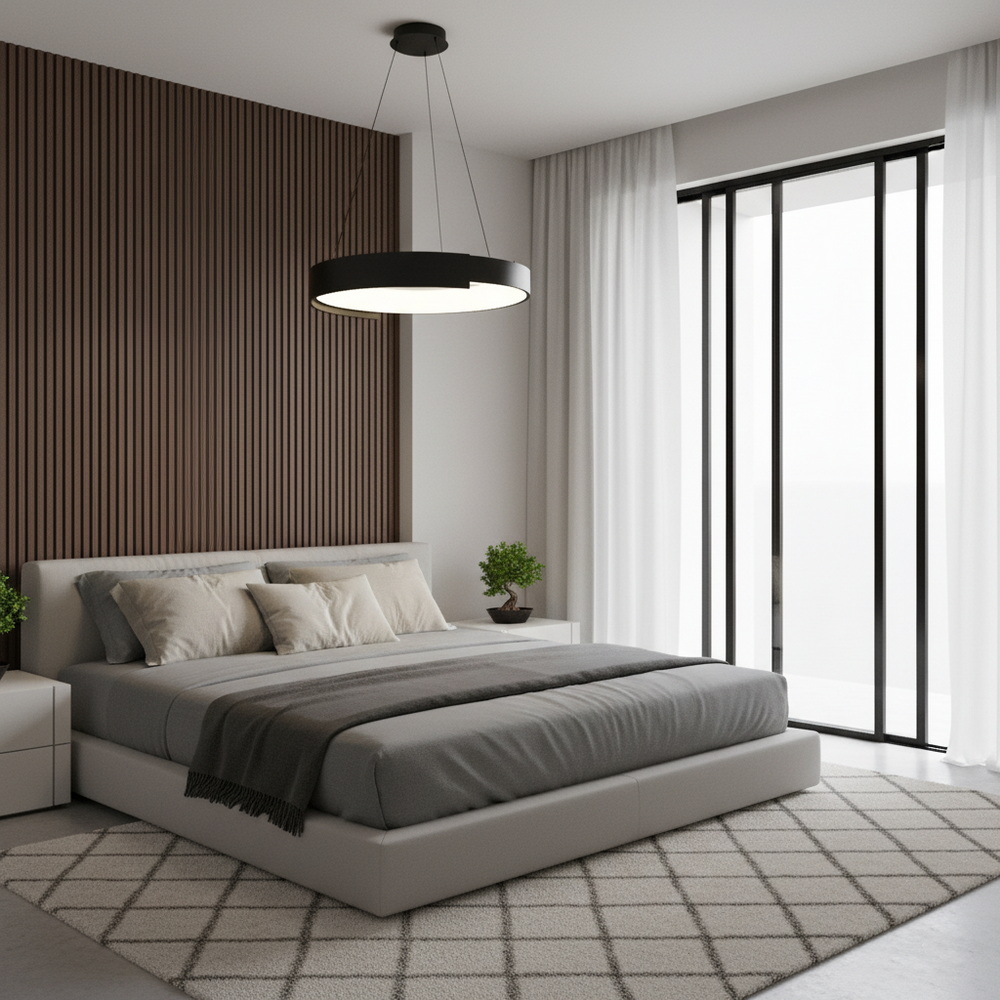 Підвісний світлодіодний світильник діаметром 50 см у чорному кольорі — це сучасне дизайнерське рішення для стильного та функціонального освітлення інтер’єру. Модель має лаконічну круглу форму та мінімалістичний дизайн, завдяки чому чудово підходить для вітальні, кухні, їдальні, спальні, офісу або комерційних приміщень.