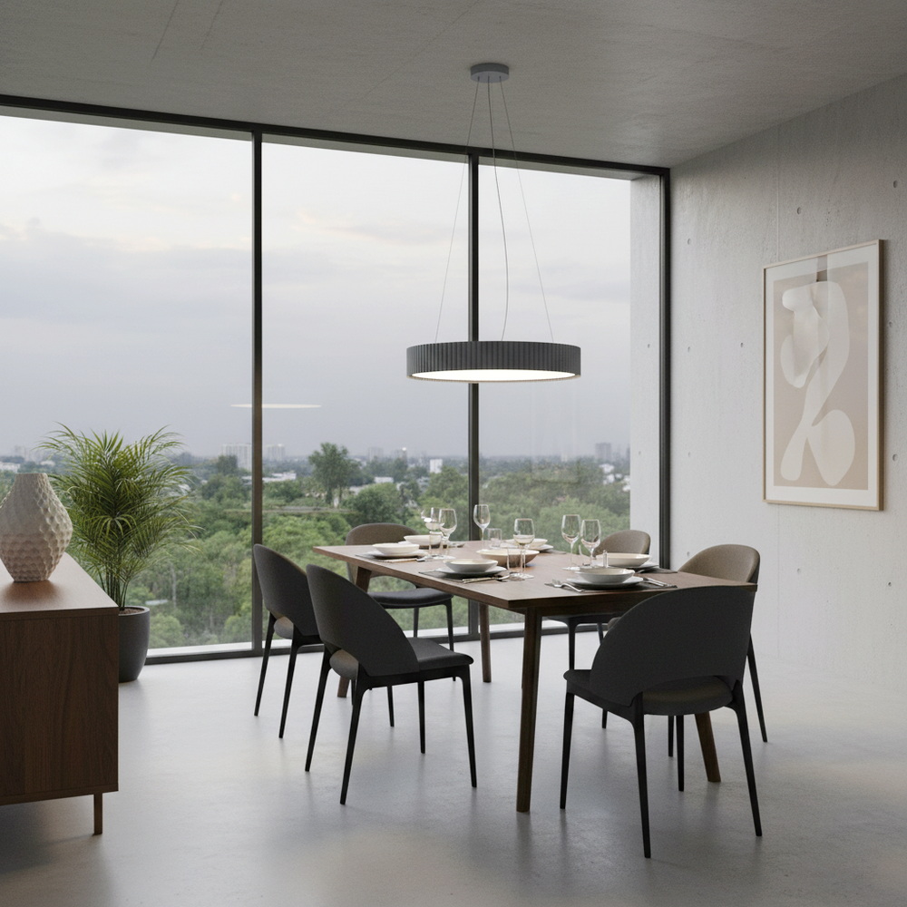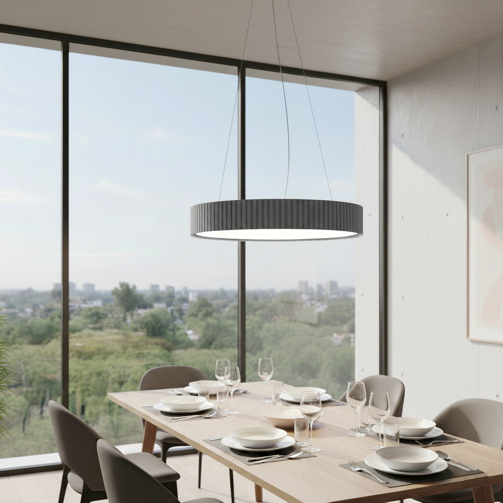 Підвісний світлодіодний світильник 50 см у сірому кольорі — це сучасне рішення для стильного освітлення інтер’єру. Лаконічна кільцева форма створює відчуття легкості, а універсальний сірий колір гармонійно поєднується з різними дизайнерськими стилями.