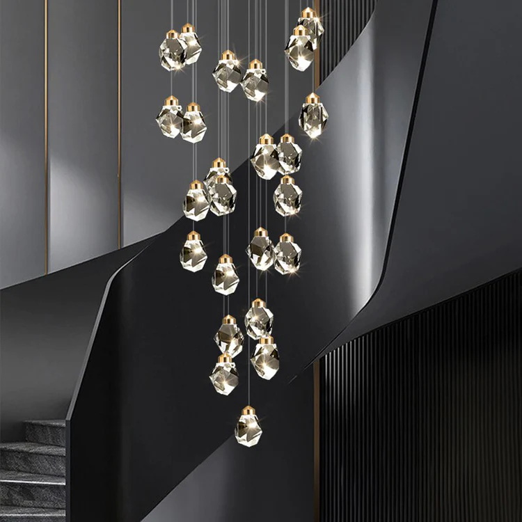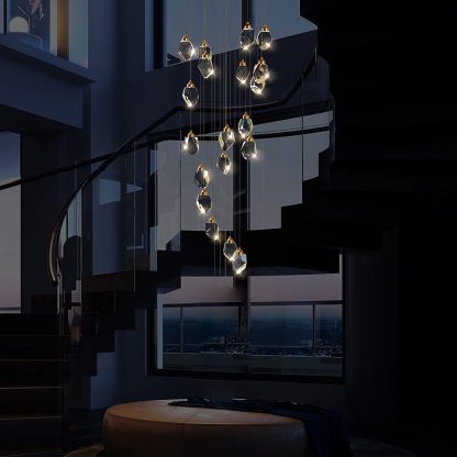Світлодіодна каскадна люстра на 18 підвісів у бронзовому золоті — розкішний світильник, який поєднує сучасну естетику та витончену елегантність. Її багаторівнева каскадна форма нагадує сяючий потік світла, створюючи вражаючий декоративний ефект у просторих приміщеннях — холах, сходових маршах, вітальнях чи над обіднім столом.