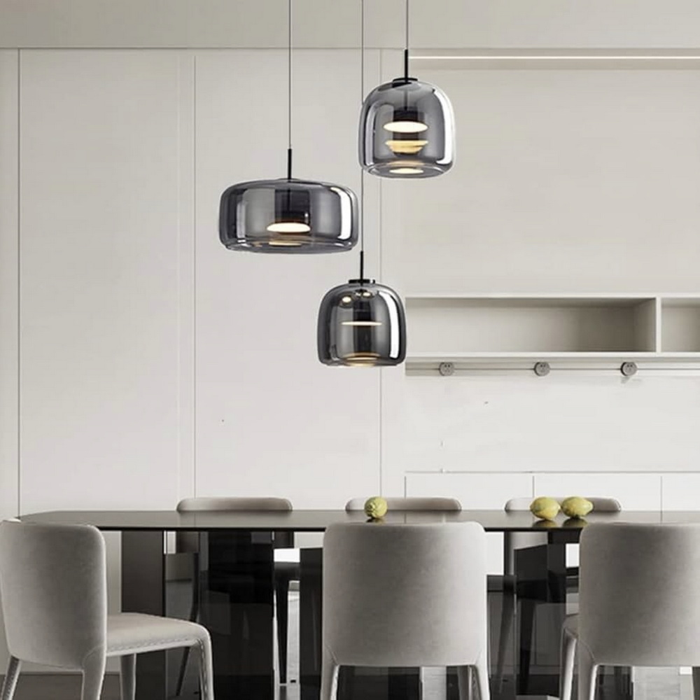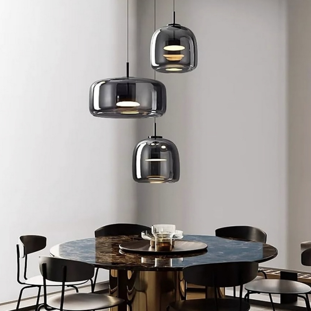 Діаметр 33 см дозволяє використовувати світильник як окремий акцент або у складі композицій із кількох підвісів — над кухонним островом, барною стійкою чи обідньою зоною. Графітове скло чудово поєднується зі стилями мінімалізм, лофт, модерн, сканді та контемпорарі, а також ефектно виглядає поруч із деревом, металом та каменем.