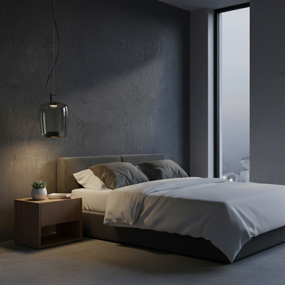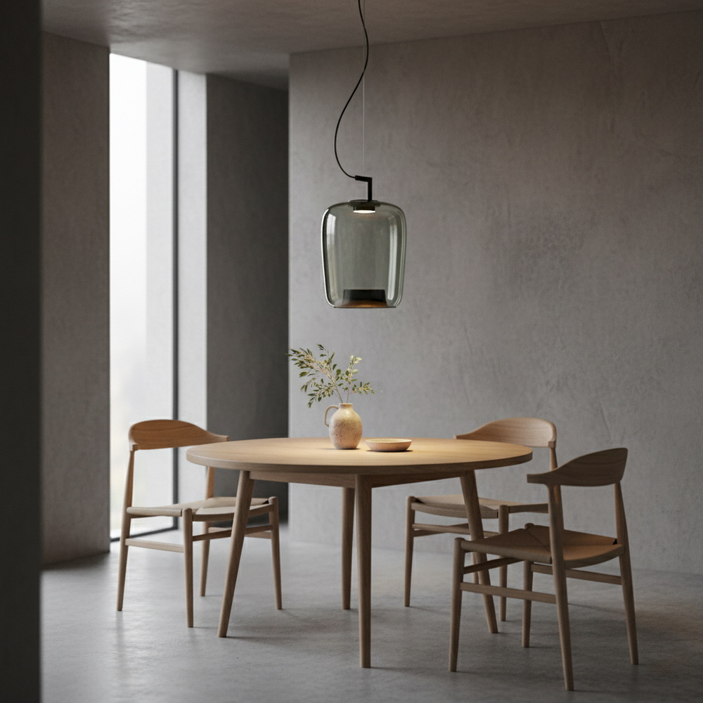 Світлодіодна технологія забезпечує низьке енергоспоживання та довговічність, а також якісне освітлення. М’яке, розсіяне світло через напівпрозоре графітове скло створює затишну атмосферу без різких тіней і відблисків, що робить світильник ідеальним для віталень, їдалень, спалень та кухонь.