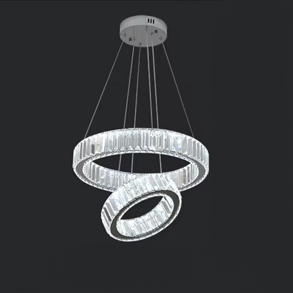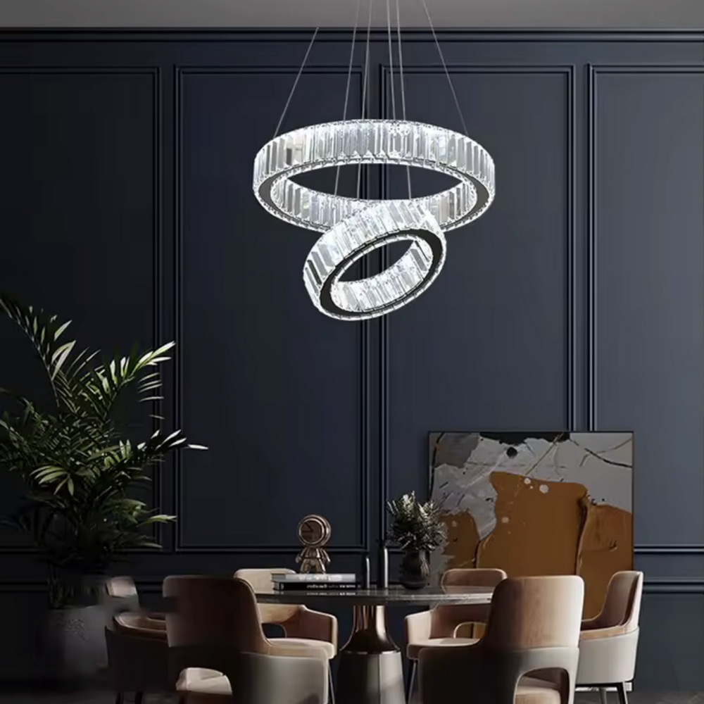 Кришталева світлодіодна люстра на 2 кільця у хромі — це ідеальний вибір для тих, хто цінує сучасний дизайн, функціональність та розкіш у кожній деталі інтер’єру.