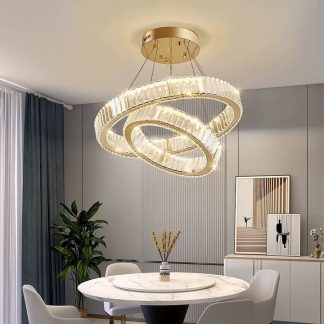 Кришталева світлодіодна люстра на два кільця діаметром 30 та 50 см у хромованому виконанні — це вишукане поєднання сучасного дизайну та елегантної розкоші. Вона стає центральним акцентом будь-якого інтер’єру, створюючи неповторну атмосферу світла та стилю. Два кільця різного діаметру створюють ефект багаторівневості, а кришталеві елементи додають блиску та витонченості.