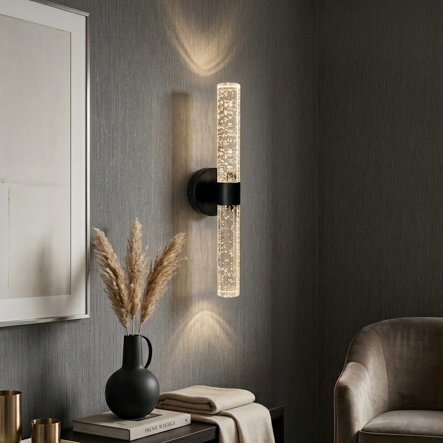 Чёрный металлический корпус подчёркивает минималистичный дизайн и отлично сочетается с модными направлениями: модерн, лофт, минимализм, скандинавский стиль и контемпорари. Благодаря вертикальному и горизонтальному монтажу светильник легко интегрируется в различные зоны — над диваном, у зеркала, в коридоре, спальне, гостиной или коммерческом пространстве.