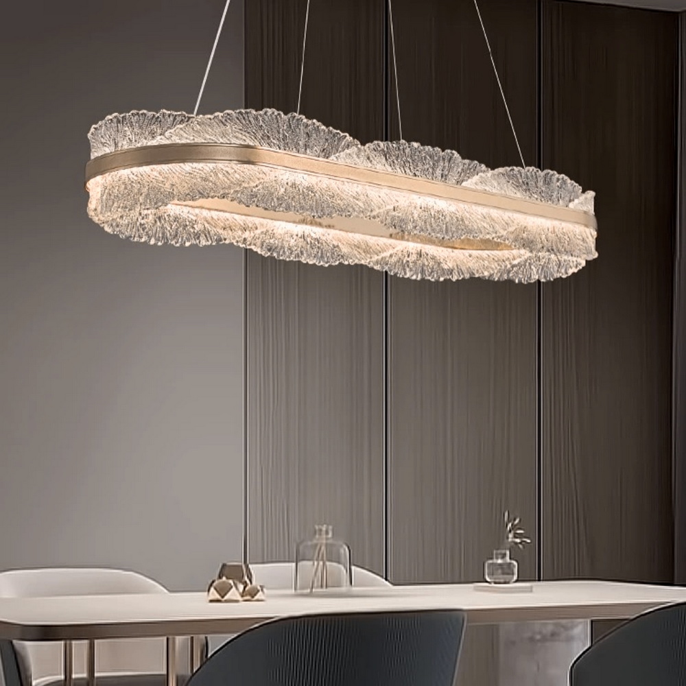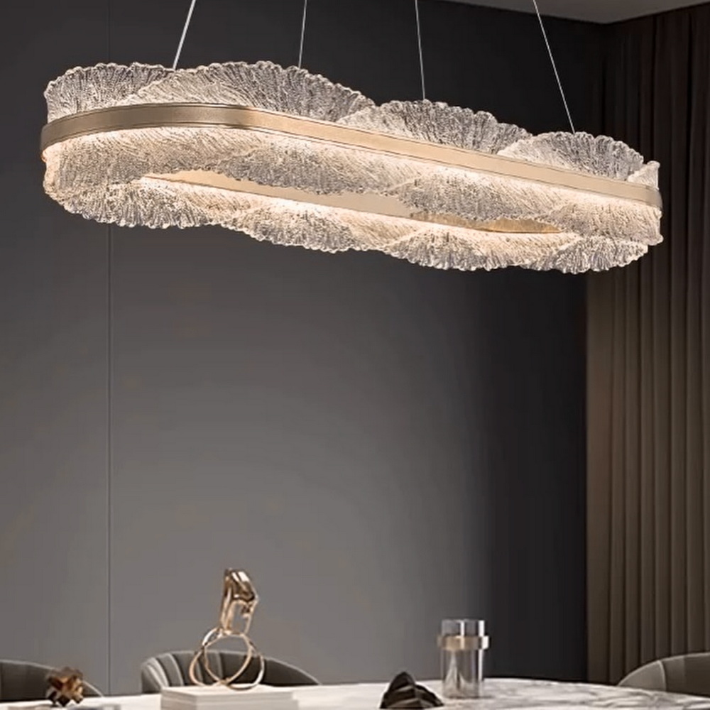 Эта овальная светодиодная люстра в золоте станет ярким акцентом вашего интерьера, добавив ему тепла, гармонии и современного шарма.