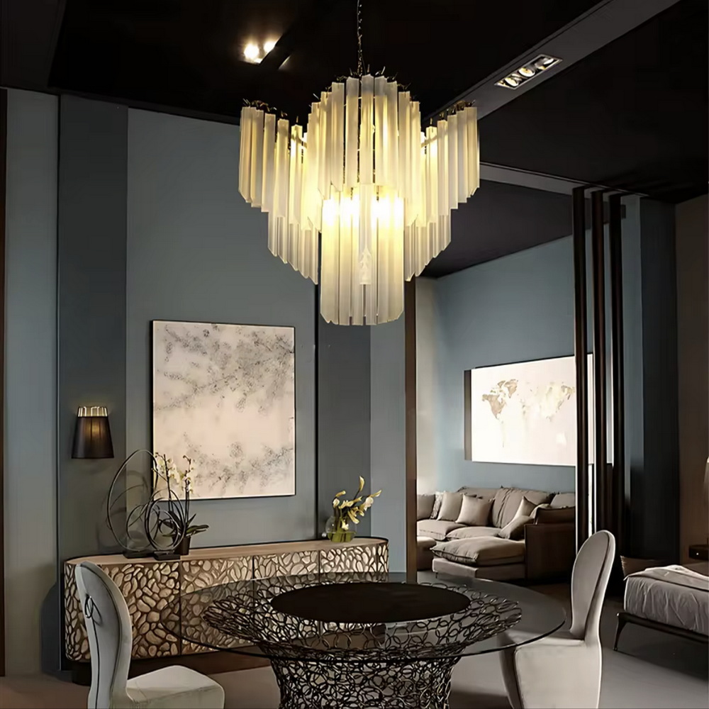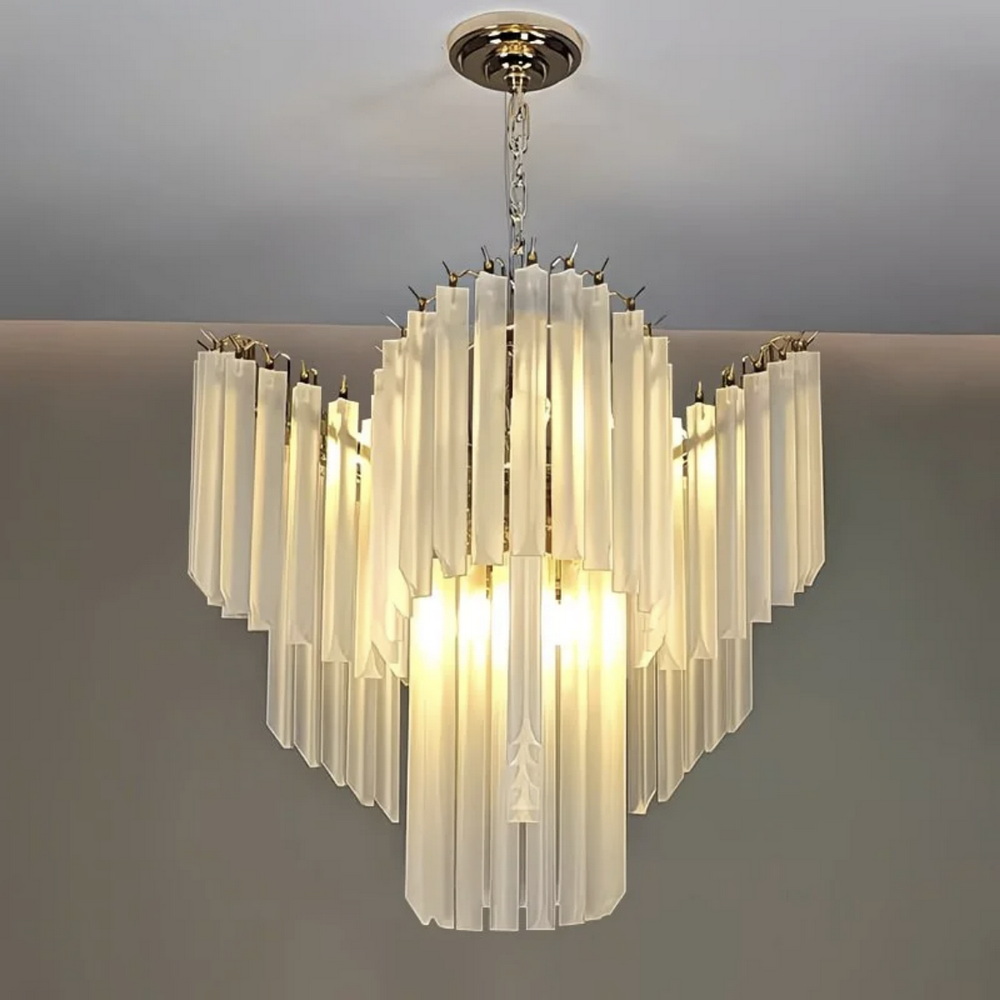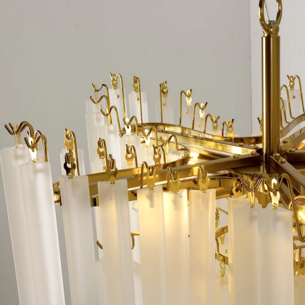 Люстра идеально подходит для интерьеров в стилях ар-деко, неоклассика, модерн и контемпорари, гармонично сочетаясь с золотыми акцентами, пастельными или тёплыми оттенками стен и мебели.