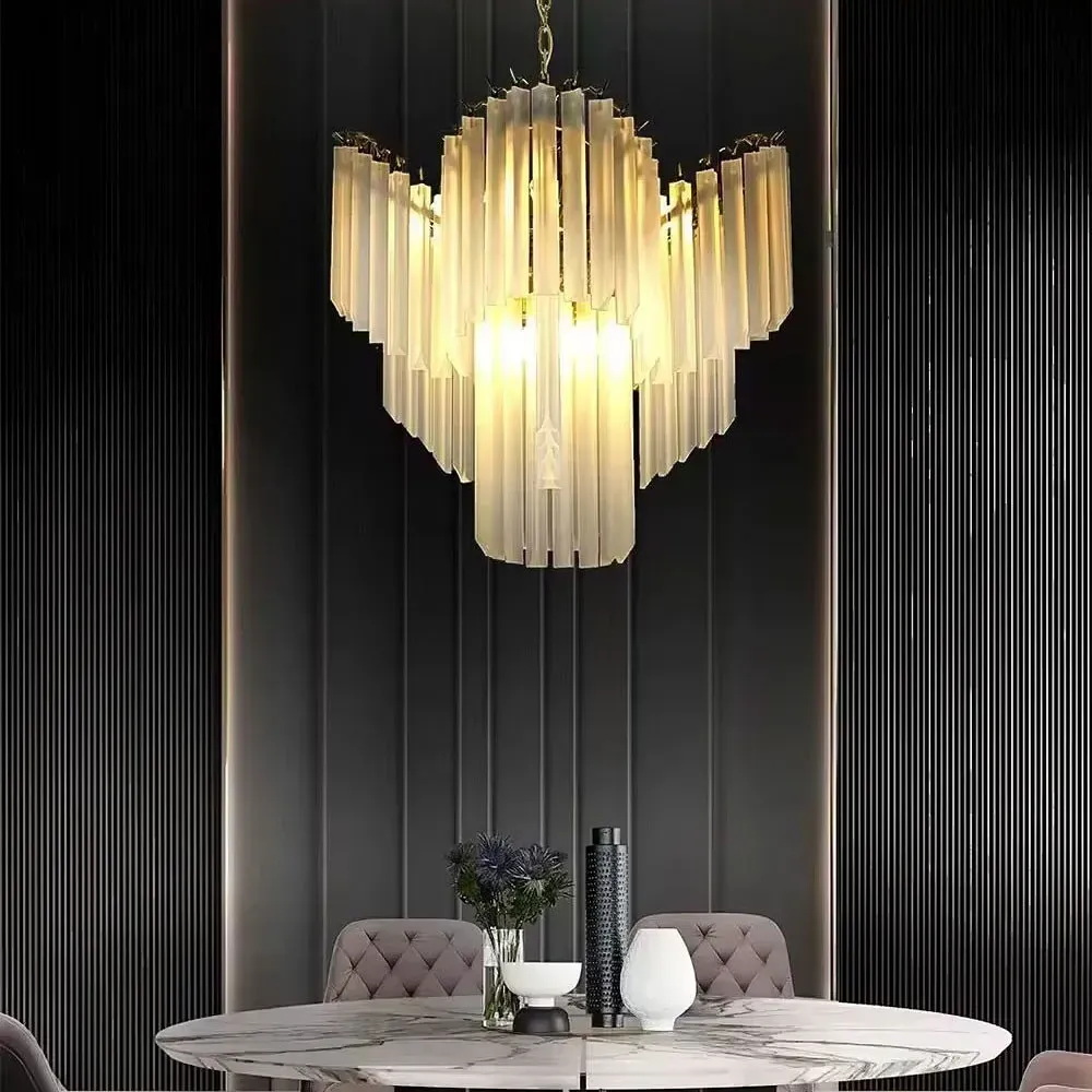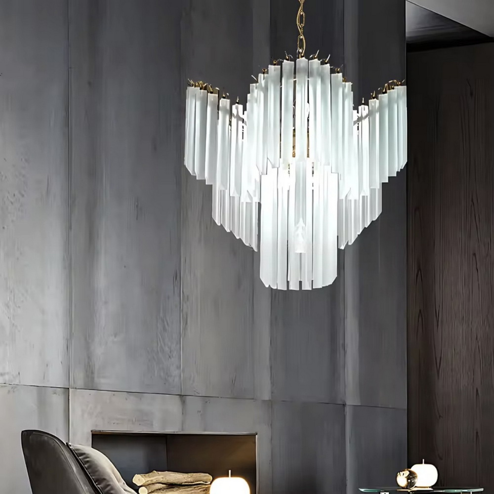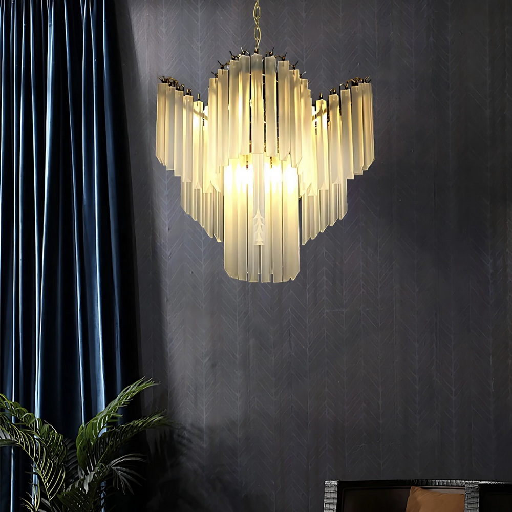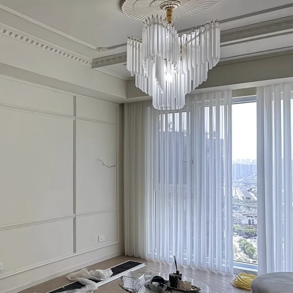 Люстра идеально подходит для интерьеров в стилях ар-деко, неоклассика, модерн и контемпорари, гармонично сочетаясь с золотыми акцентами, пастельными или тёплыми оттенками стен и мебели.