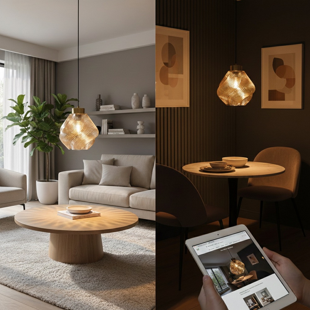 Назначение: кухня, гостиная, спальня, над столом, барная зона