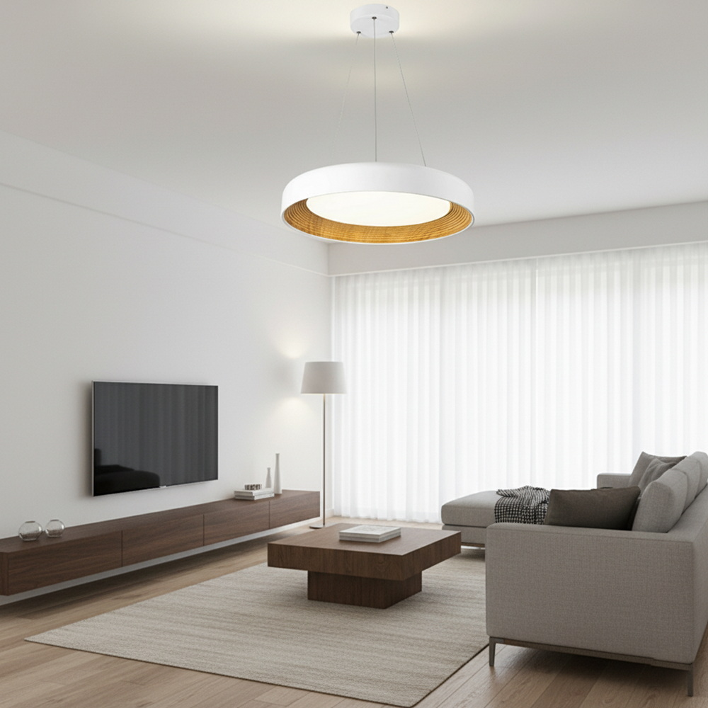 Подвесная светодиодная люстра диаметром 50 см в белом цвете — это современное решение для стильного и функционального освещения интерьера. Минималистичная форма кольца и универсальный белый оттенок делают модель идеальным выбором для интерьеров в стиле модерн, минимализм, хай-тек и скандинавский дизайн.