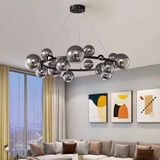 Люстра світлодіодна над столом у сатині, з графітовим склом, 96 см